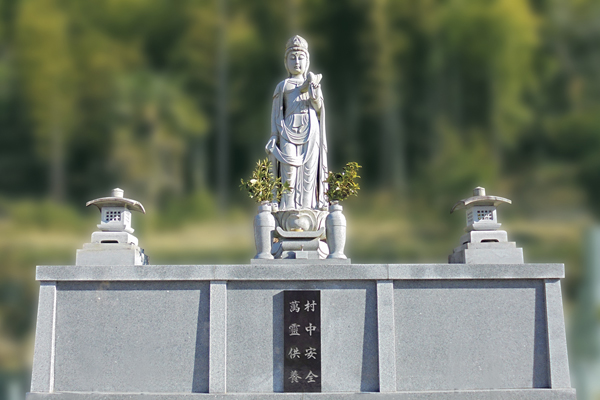 当山で檀家様の篤志により永代供養墓「宝珠観音」を建立いたしました(平成22年3月建立)。左手には当山の寺名にちなみ、「宝珠」を持った観音菩薩を特別に制作し、仏の智慧の象徴である宝珠の光とともに、浄土へ導いていただけるよう、願いを込めて「宝珠観音」と名付けました。