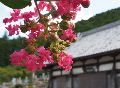 当山入り口にあるサルスベリの大木は、毎年7月末ごろから可憐な花を咲かせます。